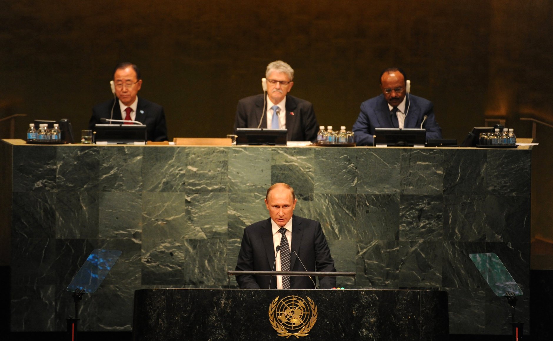 Loin d’essayer de se concilier son public par une homélie consensuelle, Vladimir Poutine reprend les formules provocantes dont il est coutumier : il condamne l’irresponsabilité de l’interventionnisme américain au Moyen-Orient et fustige la mollesse des Européens face à l’islam radical. Mais il va plus loin et surprend la communauté internationale en annonçant une intervention militaire russe en Syrie. Cette campagne, préparée depuis la fin août 2015, débutera deux jours après, le 30 septembre, par des frappes aériennes.